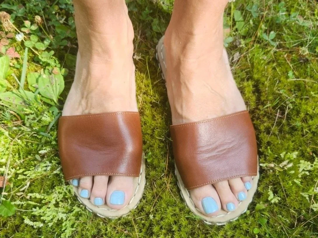 Acorn Slide Sandals - “Verrrrry nice & comfy shoes -I love them! In just 2-3 days of wear, the soft leather uppers have broken in and contain my feet with just the right amount of resistance. And the leather inner soles are also becoming smoother; my toes took a few days to get used to the feel of the thread, and now I don’t notice it. These shoes are definitely best for dry conditions, as they’re almost entirely high quality leather - even the soles. Walking the line between elegant and casual, they’re charming additions to a warm-weather wardrobe.”